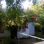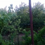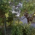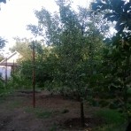 Дом одноэтажный две комнаты и веранда, металическая дверь, решетки на окнах. На участке много фруктовых деревьев (черешня, вишня, абрикос, персик, несколько сортов сливы и грушы, айва), кусты смородины, виноград.