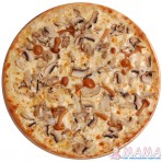 Белый-соус, моцарелла,шампиньоны, вешенка, опята.
