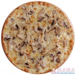 Белый-соус, моцарелла, шампиньоны, филе куриное.
