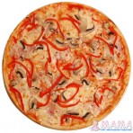 Пицца-соус, моцарелла, ветчина,перец болгарский, шампиньоны.
