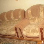 Мягкий уголок бежевого цвета с орнаментом, диван и два розкладных кресла, в отличном состоянии.
