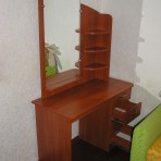 Материал: ДСП ламинированная 16 мм толщиной. Цвет - на выбор. Отделка торцев - ПВХ 0,6 мм. Зеркало 4мм толщиной, шлифовка торцев. Фурнитура: телескопические направляющие полновыдвижные, ручки и зеркалодержатели(цвет хром, сатин, аллюминий на выбор).