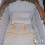 Детскую кроватку на колесиках,регулировка дна,боковинки опускаются, кокосовый матрас,зашита,балдахин,одеяло,подушка-все в отличном состоянии.В подарок НОВЫЙ комплект детского белья.