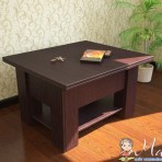 Стол-трансформер Сидней имеет небольшую нишу под крышкой, в которую вы можете сложить журналы, газеты и другие мелочи, которые лежали на журнальном столике. Также в нижней части столика есть удобная полочка , на которой можно разместить временно невостребованные вещи, не поднимая при этом крышку стола.