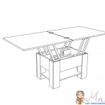 При необходимости крышка поднимается с помощью специального механизма и раскладывается, увеличивая площадь поверхности стола в два раза.