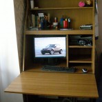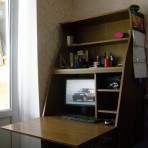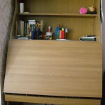 Стол-секретер с открываемой панелью для школьника в хорошем состоянии.Секретер вместительный есть место под монитор и системный блок. 4 полки для книг и тетрадей.