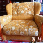 Раскладные Диван 4000 грн а также кресло 1800 грн модели Сенатор инкрустированы деревянными элементами на лицевой части.