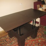 В "жизни" он красивый, фото не передает его точный вид, не очень хороший фотоаппарат. Стол трансформер. Материал — ламинированная ДСП «Swisspan» 16 мм,