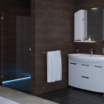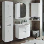 Коллекция вмещает в себя тумбу с умывальником зеркало и пенал.
