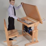 Столешница может быть расположена горизонтально - как стол, и под углом - как парта. Изменить угол наклона сможет даже ребёнок без помощи взрослых.