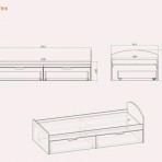 Кровать детская 90+2, с 2-мя ящиками, фабрики Компанит, изготавливается из ДСП в следующих цветах: венге темный, махонь, орех, яблоня, ольха, бук, дуб сонома.