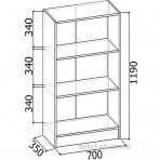Габариты не превышают размеров 700х350х1190 мм, при этом он имеет достаточное количество полок для хранения офисных принадлежностей.