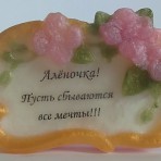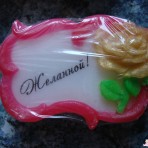 Мылко небольшое, весом 90 грамм, поэтому возможно написание только очень короткого поздравления.