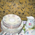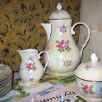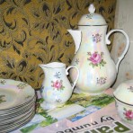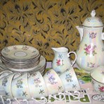 Целый, симпатичный, новый. Пр-во Германия. Чашечек и тарелочек (два вида) по 6, а также чайник, сливочник, сахарница