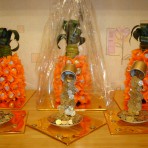 Подарочные сладкие букеты и всевозможные детские «игрушки»из конфет, торты из памперсов, торты из полотенечек, топиарии и разнообразные поделки из натурального кофе, «денежное» дерево, чашка – проливайка из монет на заказ.