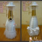 Очень красивый и оригинальный декор бутылок шампанского. Материалы: фатин, атласные ленты, бусины, цветочки ручной работы из полимерной глины. Цветовая гамма по желанию заказчика. Цена указана за украшение двух бутылок(стоимость шампанского НЕ входит в цену)