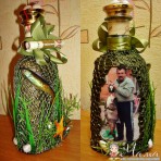 Бутылка"Улов рыбака"прекрасный подарок для мужчин,которые не мыслят свой досуг без рыбалки. Работа выполнена в технике декупаж, мотив - фото самого удачного Вашего улова, украшения - всевозможные рыба...