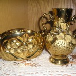 ф2 Ваза золотистого цвета необычной формы, конфетница. Высота 9 см, длина 20см, ширина 10 см.