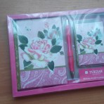В набор входит записная не датированная книжка, ручка, блокнот для записи контактов
