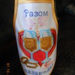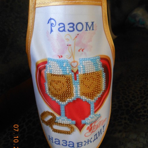 Фартушек для бутылки на праздничный стол, вышит чешским бисером, ручная работа