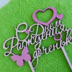 в наличии новые топер для тортиков. Разные надписи. "С Днем рождения, доченька" - в наличии. размер: длина 22,5 см, высота 15 см (с хвостиком буквы"д") + общая длина ножек 10 см. При пересылке укрпочт...