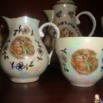 Кофейный перламутровый фарфоровый сервиз Мадонна ГДР. 27 предметов: 11 чашек, 12 блюдец, чайник, сливочник, сахарница.