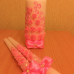 Декорирую также: фужеры,бутылки с шампанским, подушечки для колец.Декор свадебных аксессуаров может быть подобран в любимой вам расцветке.