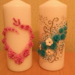 Обряд зажжения домашнего очага является сравнительно недавно появившейся (или, скорее, возродившейся) в нашей стране традицией. Родители новобрачных символически зажигают огонь в домашнем очаге молодоженов, таким образом передавая свою любовь, тепло и благословение новой семье. Свеча декорирована бисером, бусинами, лепкой из полимерной глины ручной работы, ручной росписью, атласными лентами.