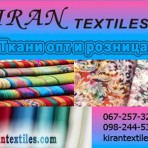 Интернет магазин тканей "Кirantextiles" представляет огромный ассортимент недорогих, качественных искусственных тканей производства Китая, Кореи и Турции. У нас вы можете заказать ткань от 1 метра, а заказывая от 10 и 30 метров каждого материала, вы гарантированно получаете СКИДКУ! В наличии имеются ткани: креп (масло трикотаж, сатин, шифон), гипюр (на атласе, стрейч, не стрейчевый), атлас (горох, принт, стрейч, не стрейч), трикотаж (леопард, французский, принт), ткань копейка и многие другие. Доставка по всей Украине, при необходимости высылаем каталог с образцами тканей. Посмотреть весь ассортимент товара и сделать заказ вы можете на нашем сайте kirantextiles.com или звоните по телефонам +38(098)-244-53-53 Аня, +38(067)-257-32-70 Асиф.