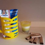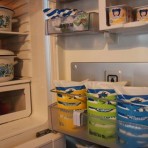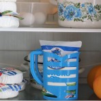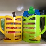 1. Запакованный пакет молока (йогурта или кефира) 1л вставляем в подставочку, слегка раскрыв в сторону ручки...