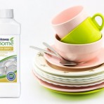 Также содержит ароматизатор, лимонен, метилхлороизотиазолинон и метилизотиазолинон. Можно безопасно применять для очистки всех видов фарфора, стеклянной посуды, кастрюль, сковородок и столовых приборов, даже хрусталя и изысканной серебряной посуды.