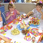 колпачки, шары, праздничная сервировка стола, дудочки, свечи, гирлянды.