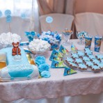 Candy Bar - это стилизированный под тематику мероприятия стол со сладостями: пирожные макаруны, изящные капкейки, мини-чизкейки, кексы, печенье с разноцветными сахарными узорами, фрукты, сладкие канап...