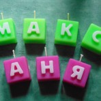 Красивые и красочные свечи-кубики с именем вашего чада, любимого человека или просто друга! Необычный подарок и красивое дополнение к праздничному столу. 10 грн - стоимость одного кубика с буквой. Воз...