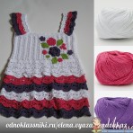 На фото платье размером 33 см в ширину(полуобхват) и 62 в длину из пряжи Papillon (Папиллон) от Lanoso (Ланосо), состав: 50% хлопок, 50% вискоза, супер мягкая, отлично подходит для детских вещей.