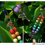 Бусы "Радуга" ручной работы, состав: деревянные бусы, вощеный шнур, хрустальные бусины, металлические бусины, фурнитура бронзового цвета, подвеска с камнями. Декоративный замочек в виде стрекозы засте...