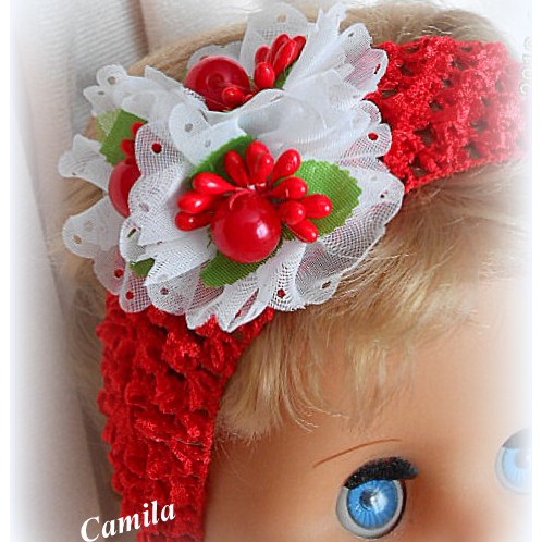 Повязочка Калинка – это яркое украшение для маленькой принцессы.Сочетание красного , белого и зелени необычайно хорошее для юных леди!