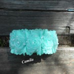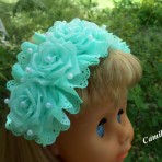 Розочки из органзы мятного цвета украшены жемчужинами,что делает их еще нежнее. Подойдет к любому празднику.