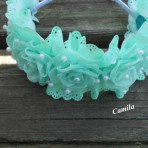 Обруч-венок Нежная мята очень интересен в исполнении благодаря ажурному контуру,выполненному тоже вручную.Это придает ему особый шарм и делает эксклюзивным.Хозяйка этой красоты будет уверена в том,что никого не встретится с аналогичным украшением.