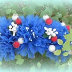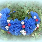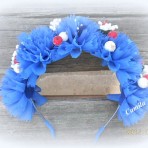 Венок цветок-василек изготовлен из вуали цвета электрик,декором