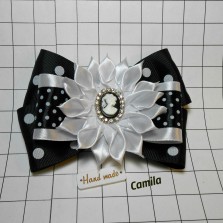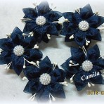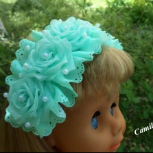 Цветки выполнены из органзы, по велюровой резинке перемещаются – можно расположить их равномерно по периметру.