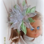 Весенний ветерок – ободок , на котором расположился крупный георгин из органзы, украшенный белым жемчугом.