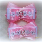 Юная леди – это бант-резиночка для настоящих принцесс. Изготовлена работа из атласа с использованием кружева в форме цветочков, страз и камеи,расположенной в центре.