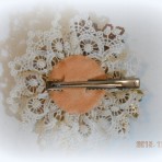 Изделие выполнено из атласа,гипюра и кружева,бисера и бусин,а также металлического крепления и проволоки.