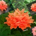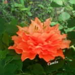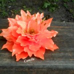 Зажим "Яркий оранж "– изумительно-красивый цветок напоминает лилию.Изготовлен из атласа ,в качестве декора использовала глиттер золото и тычинки из клея и песочка для ногтевой эстетики.