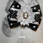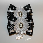 Размер банта 8*11 см . Изготовлены банты из репсовой и атласной ленты ,украшены камеей со стразами .