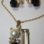 Набор состоит из пары серег и кулона на цепочке, покрытых позолотой