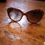 Солнцезащитные очки, тигровый принт. Линзы в хорошем состоянии, без царапин, с коричневым оттенком. По бокам на дужках золотистые вставки.