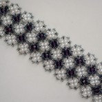 Браслет выполнен из японского бисера, украшен искусственным жемчугом и гранеными бусинами из чешского стекла.