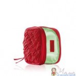 Дизайнерская косметичка изумительного алого цвета с нежно-зеленой атласной подкладкой. Многослойные оборки напоминают раскрывающийся бутон. Молния по всему периметру открывается в обе стороны. Вместительный внутренний карман для хранения женских штучек.